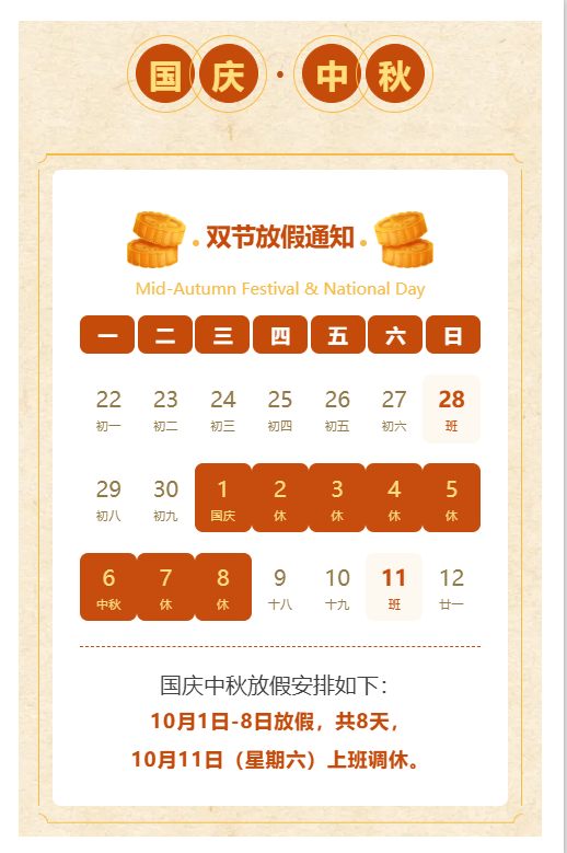 国庆、中秋放假安排