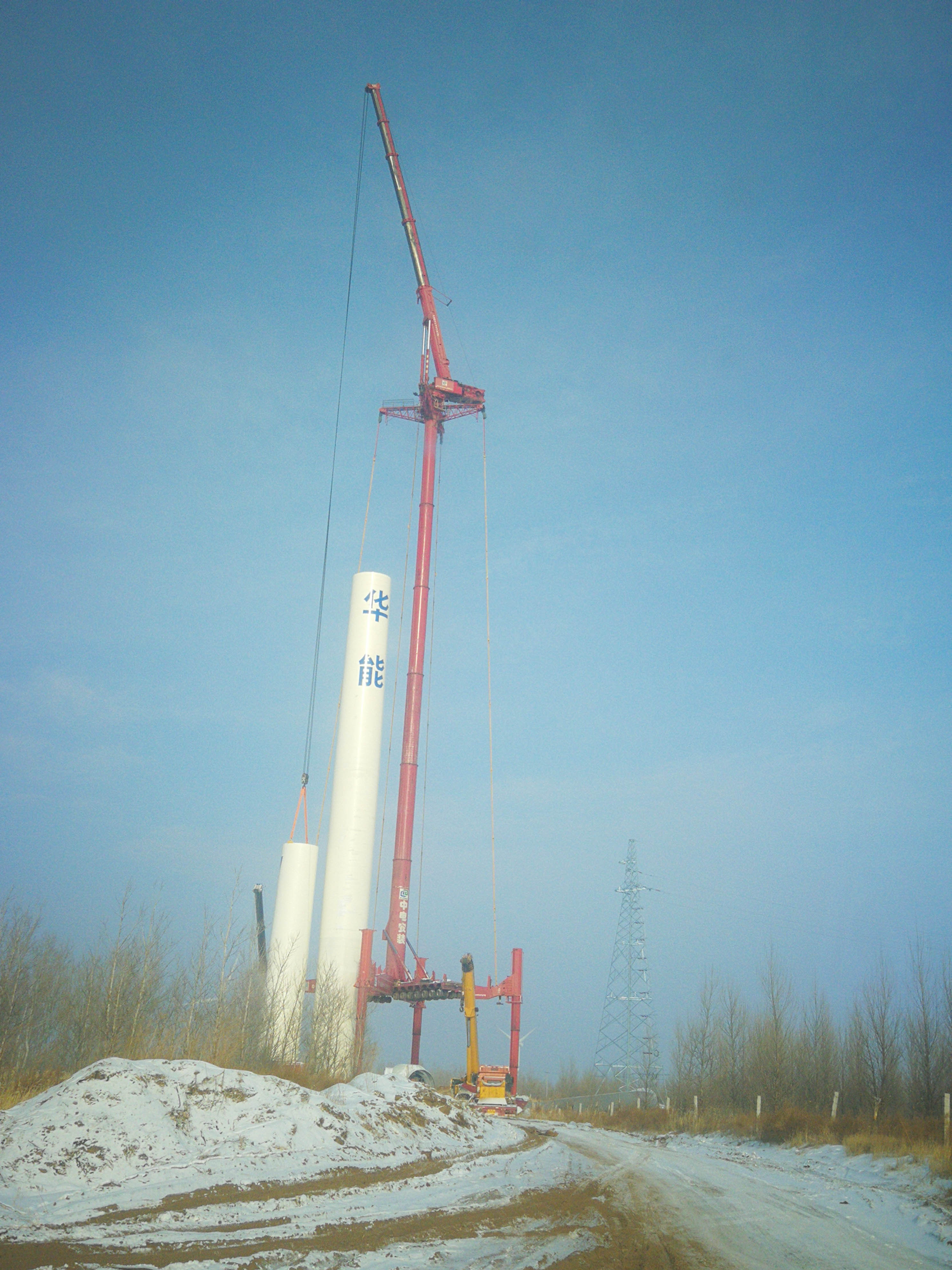 华能蒙东能源开沪风电厂130米塔筒安装